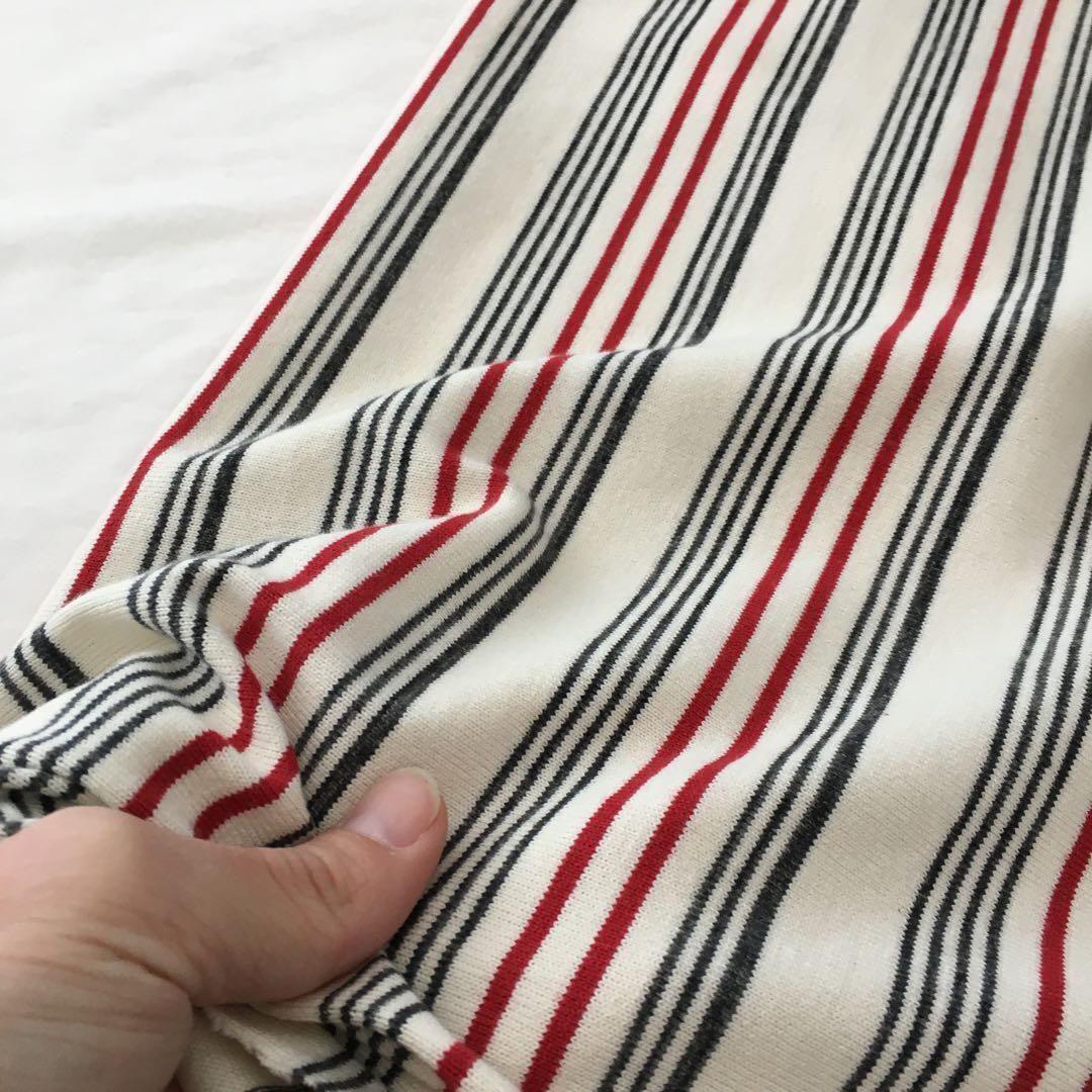 ◎厚み感:オフホワイト地20番手/スペック染めライン18番手