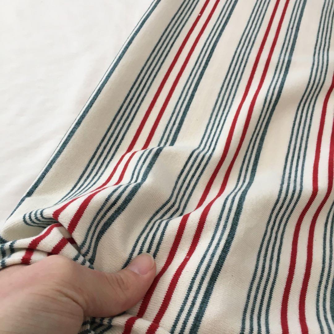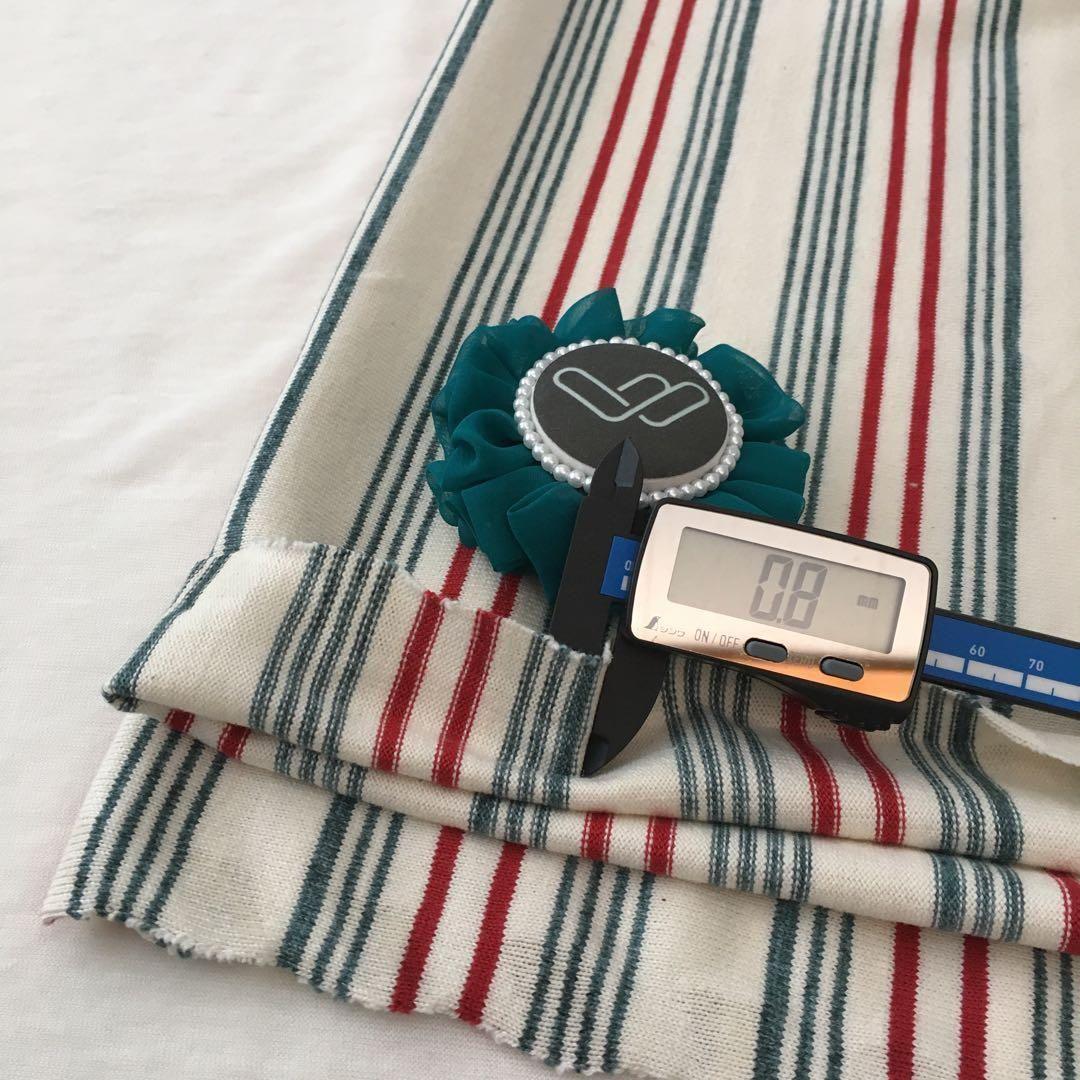 ◎厚み感:オフホワイト地20番手/スペック染めライン18番手