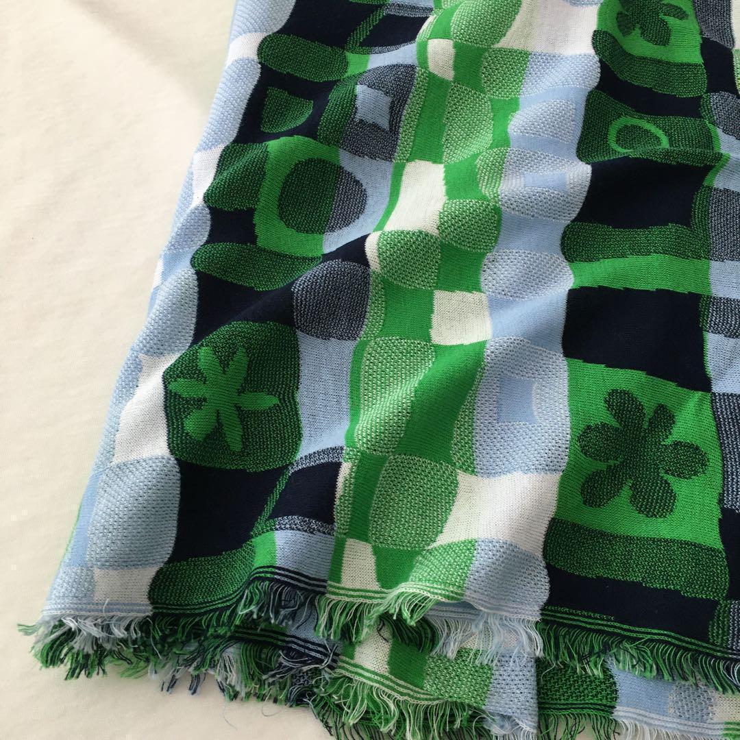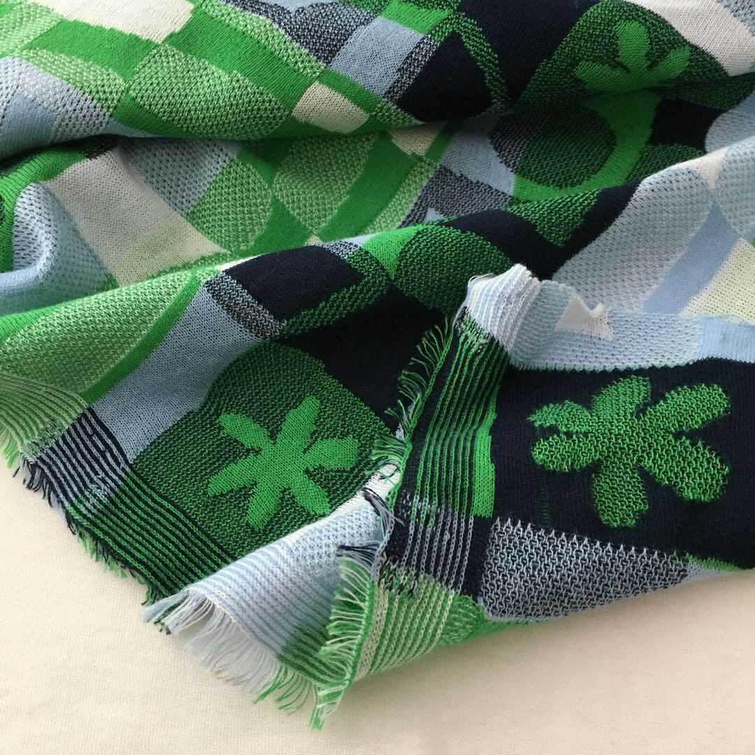 ◎質感:ガーゼ感のあるソフト感/両面に絵柄のあるダブルジャガードです。ボーダー調に見えるのも素敵