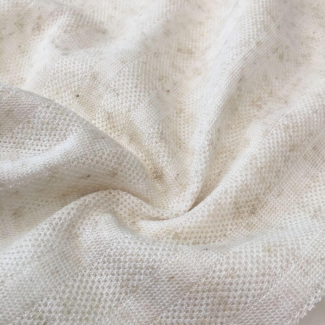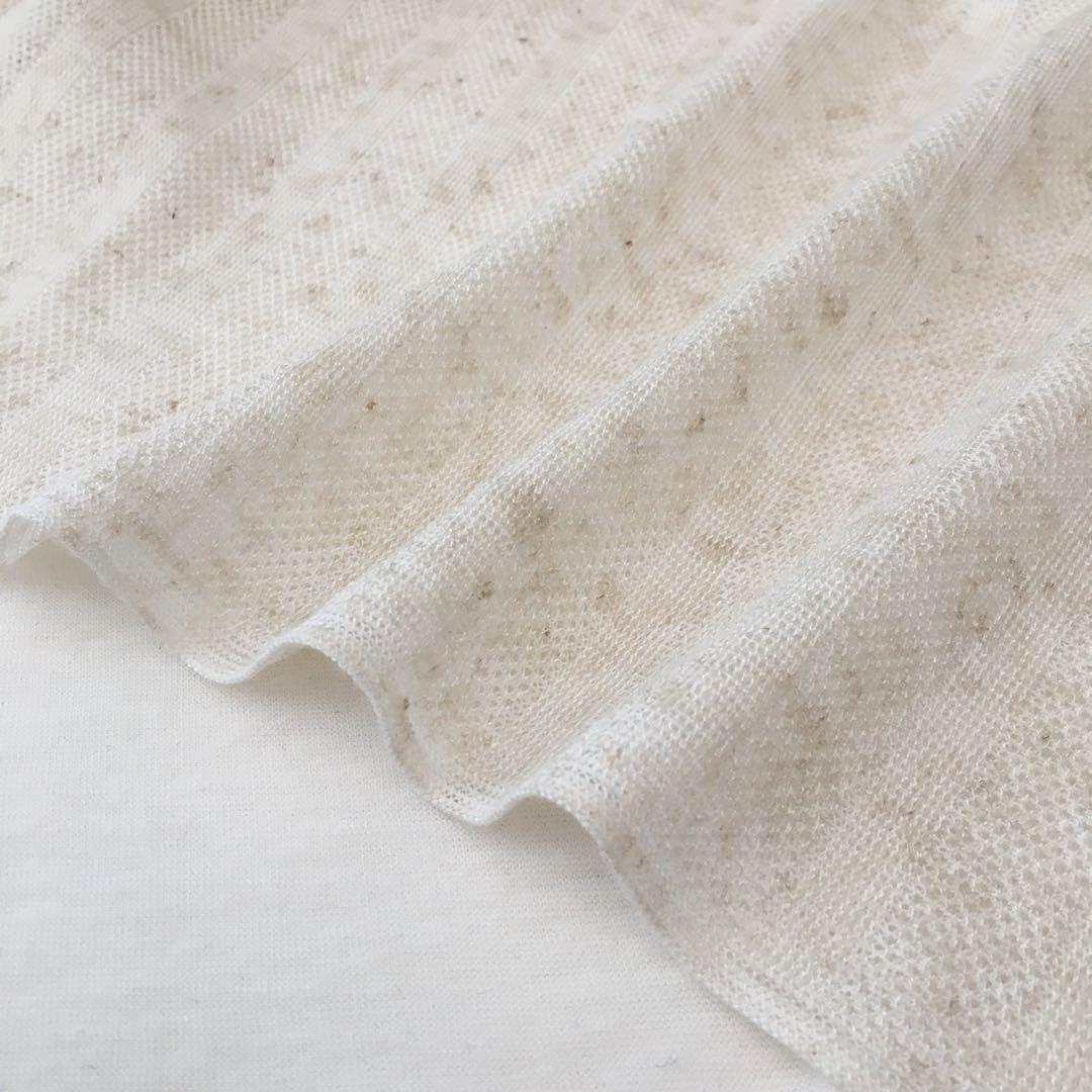 ◎質感:リネン特有の程良いハリ感/ボーダー部は天竺構成、メッシュ部は肌あたりの良い鹿の子編みの構成です。