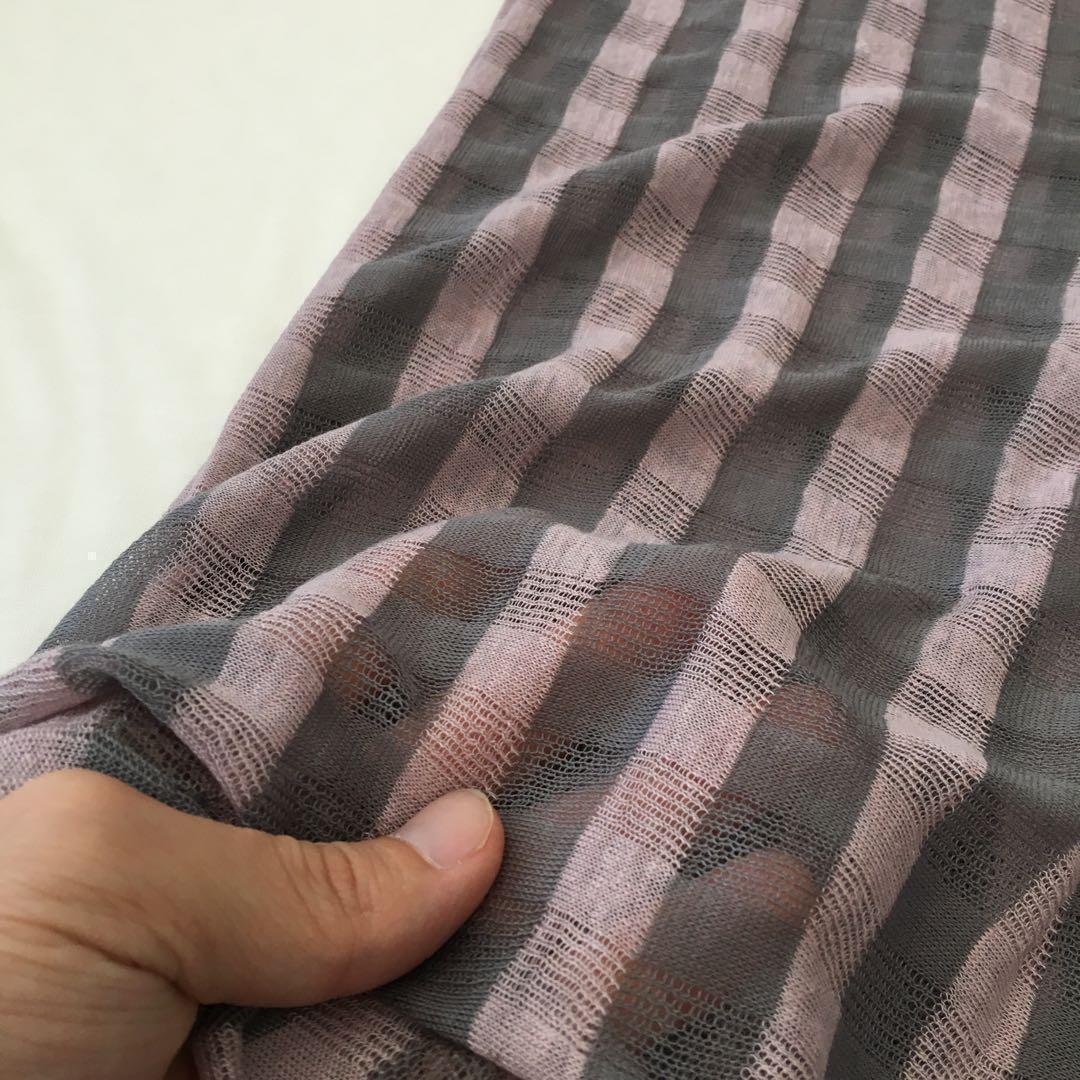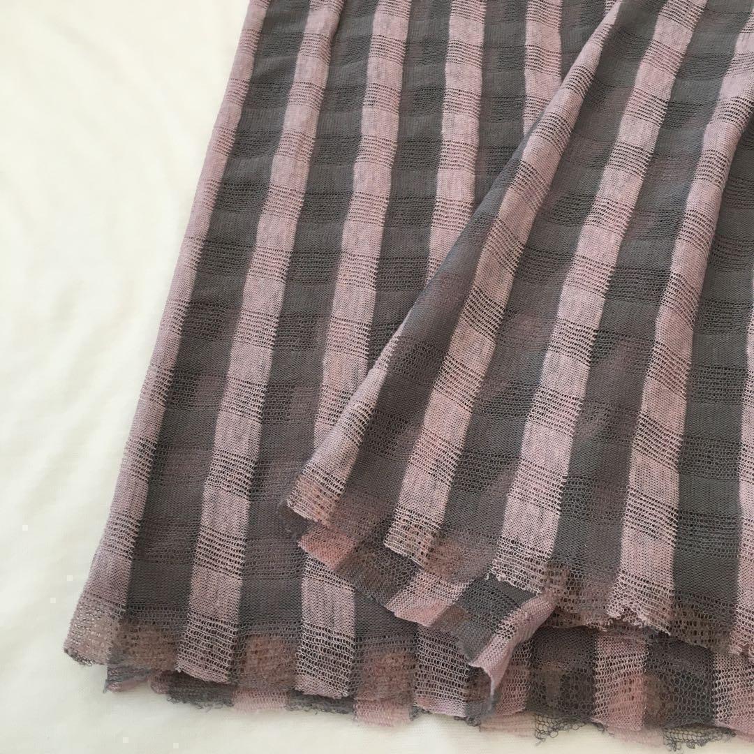 ◎質感:やわらかめ/ふわり軽量/ジャガードチェックのわずかな凹凸感が肌あたりの良さを引き立てています。
