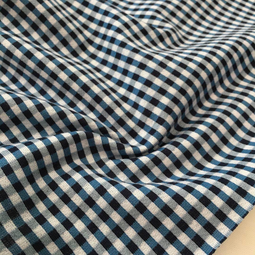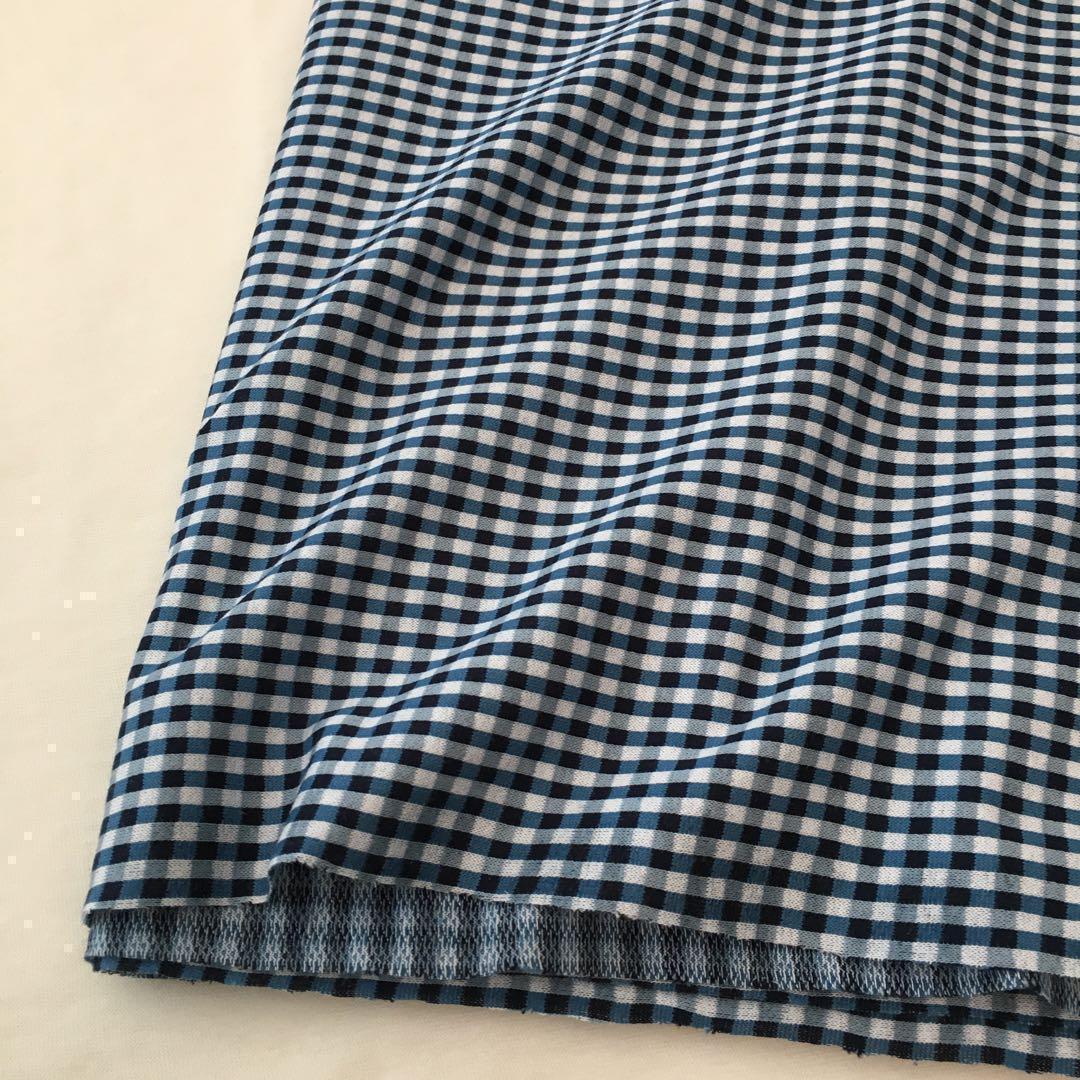 シンカー編み機で編み立てられており、凹凸感のないジャガードでギンガムを表現しております。シンカー編みは地が硬くなる場合がありますが、こちらはふわりと軽量で適度な伸縮性も兼ね備えた良い風合いの1枚です。