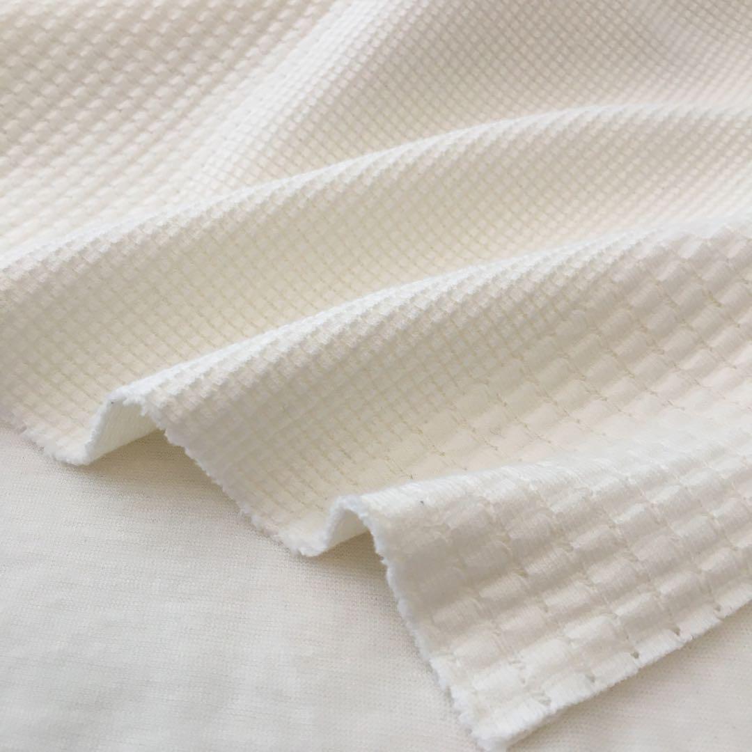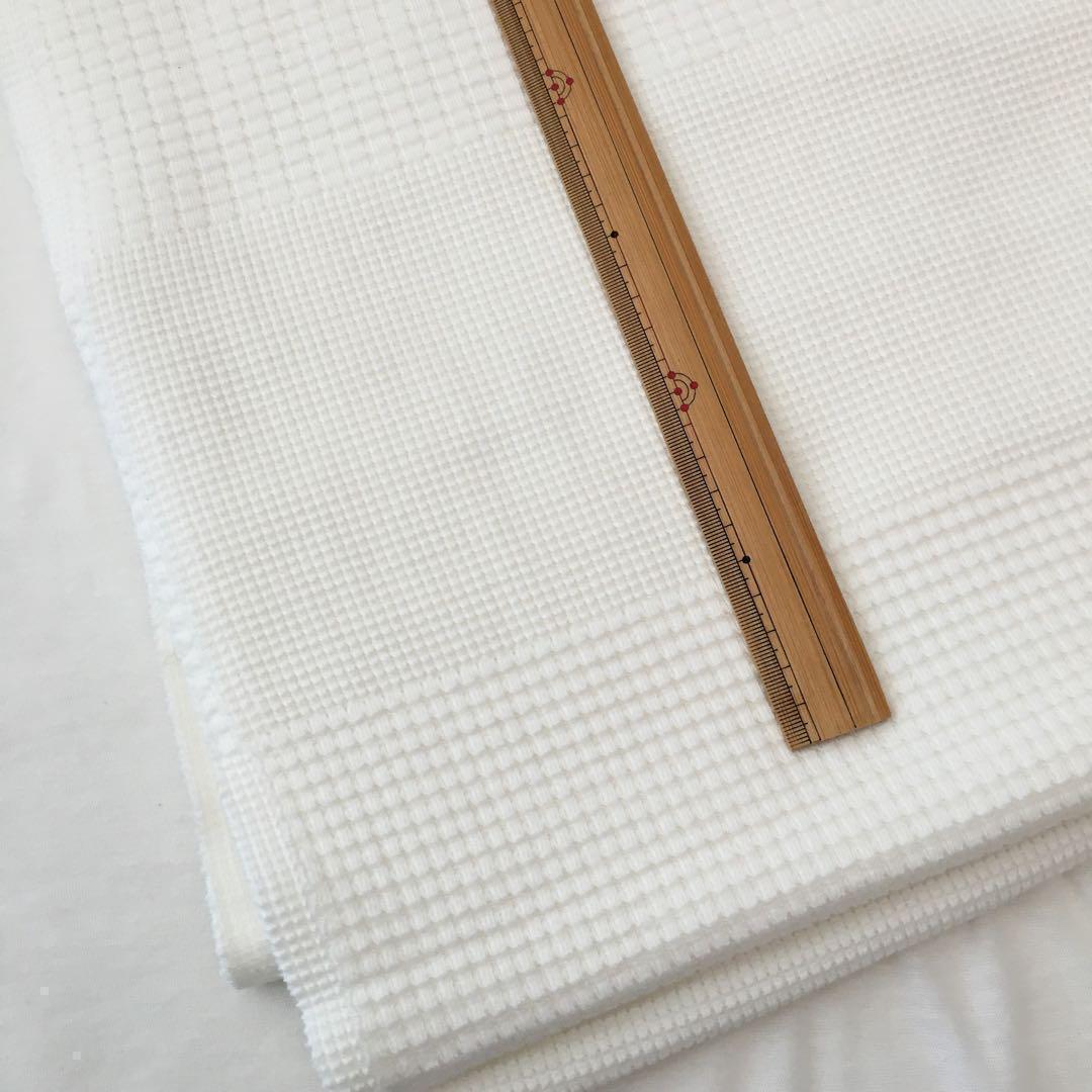 ◎質感:肉厚地ながらソフト仕上げです。異なるワッフルがパッチワーク風に配置されたデザイン性溢れる1枚です。