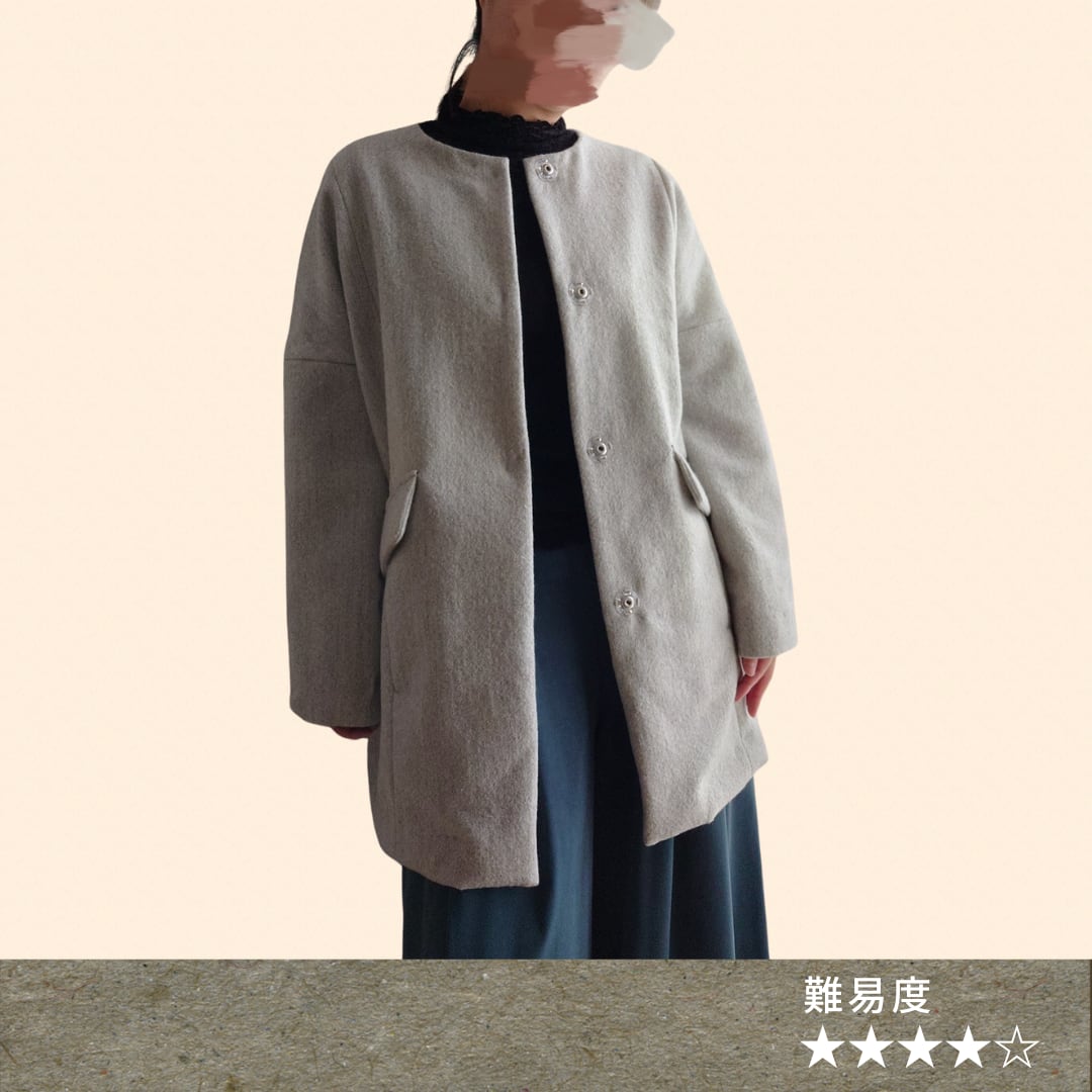 布帛で作る裏なしのノーカラーコート。選ぶ生地次第で印象がガラリと変わります。