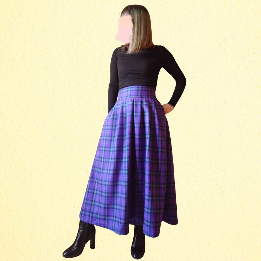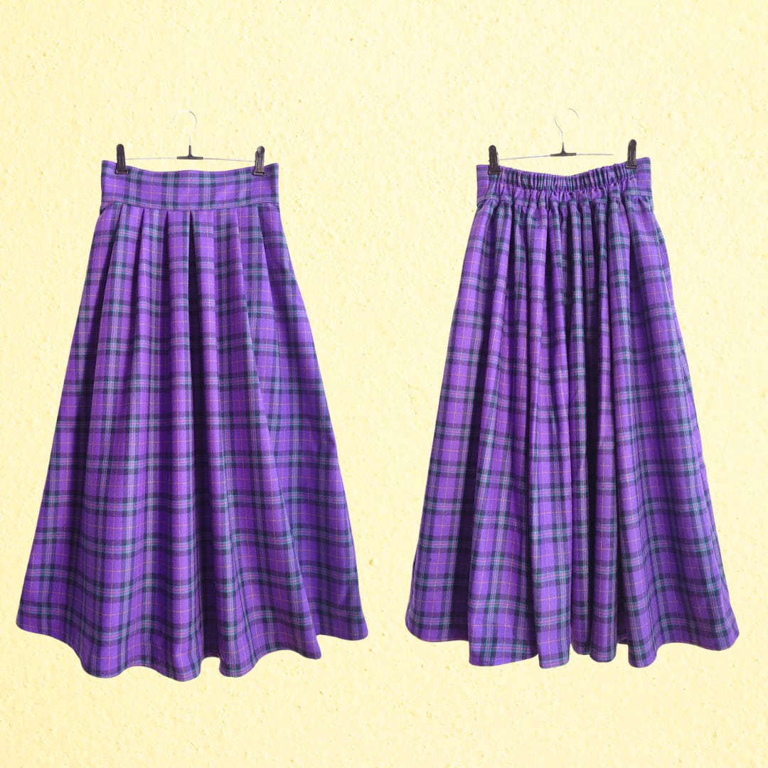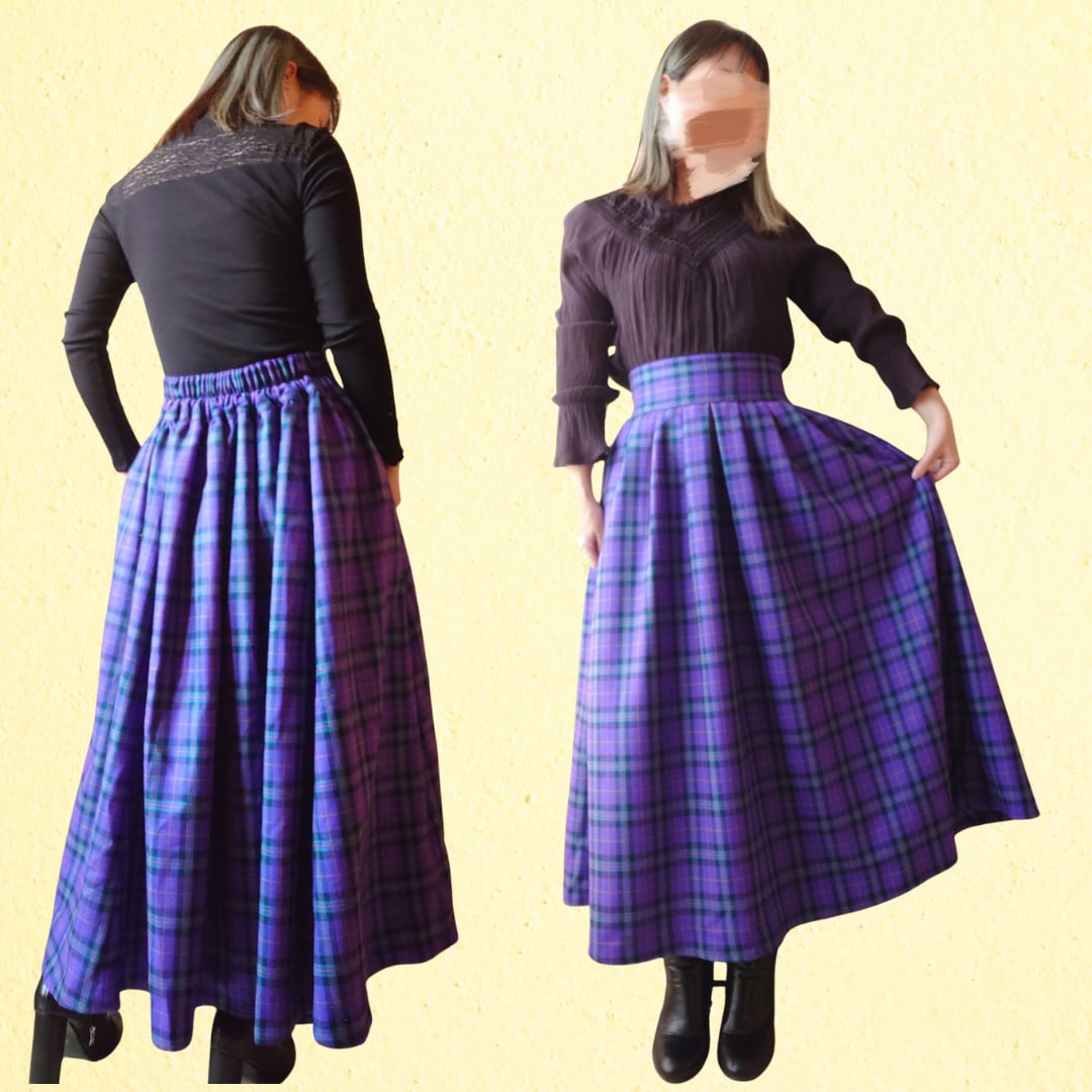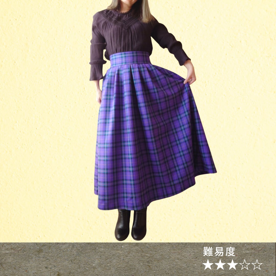 布帛生地で作るロング丈スカート♪広めのベルトでトップスをインして着こなせるデザインで、後ろはゴム仕様で着心地も抜群!